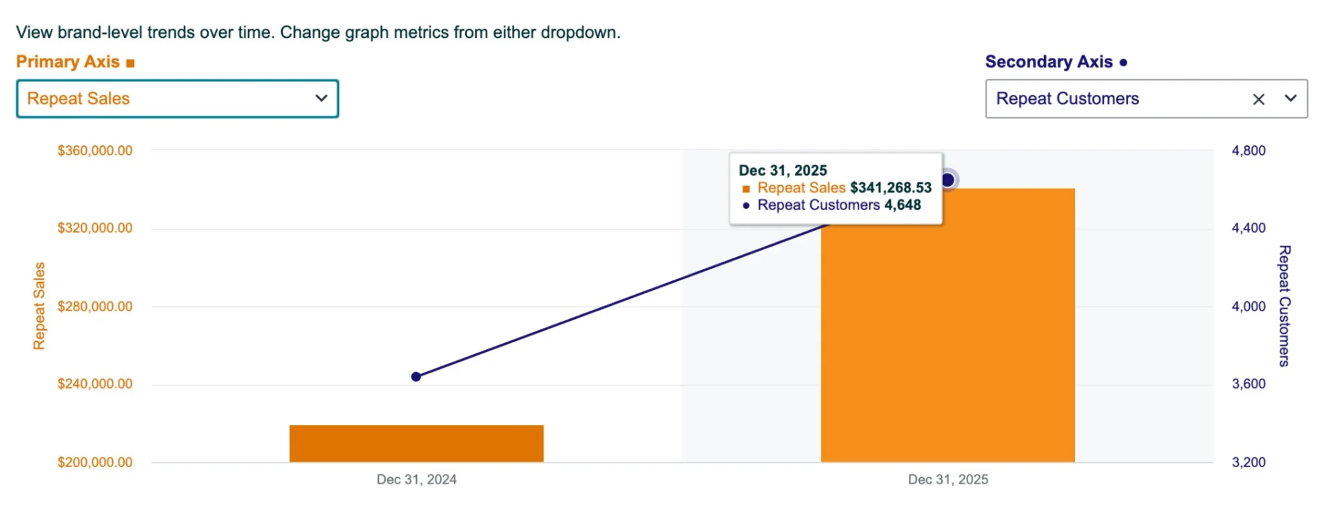 After reclaiming listing control and improving listing quality, customer purchase behavior became more consistent. In 2025, the brand generated 4,648 repeat customers, resulting in $341,268 in repeat revenue from 11,902 repeat orders.
